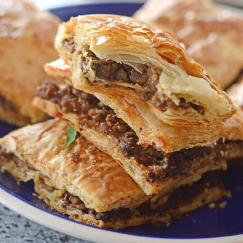 Flaky, golden pastry layered with a savoury spiced meat filling. Buttery, crisp on the outside, and rich, comforting on the inside.